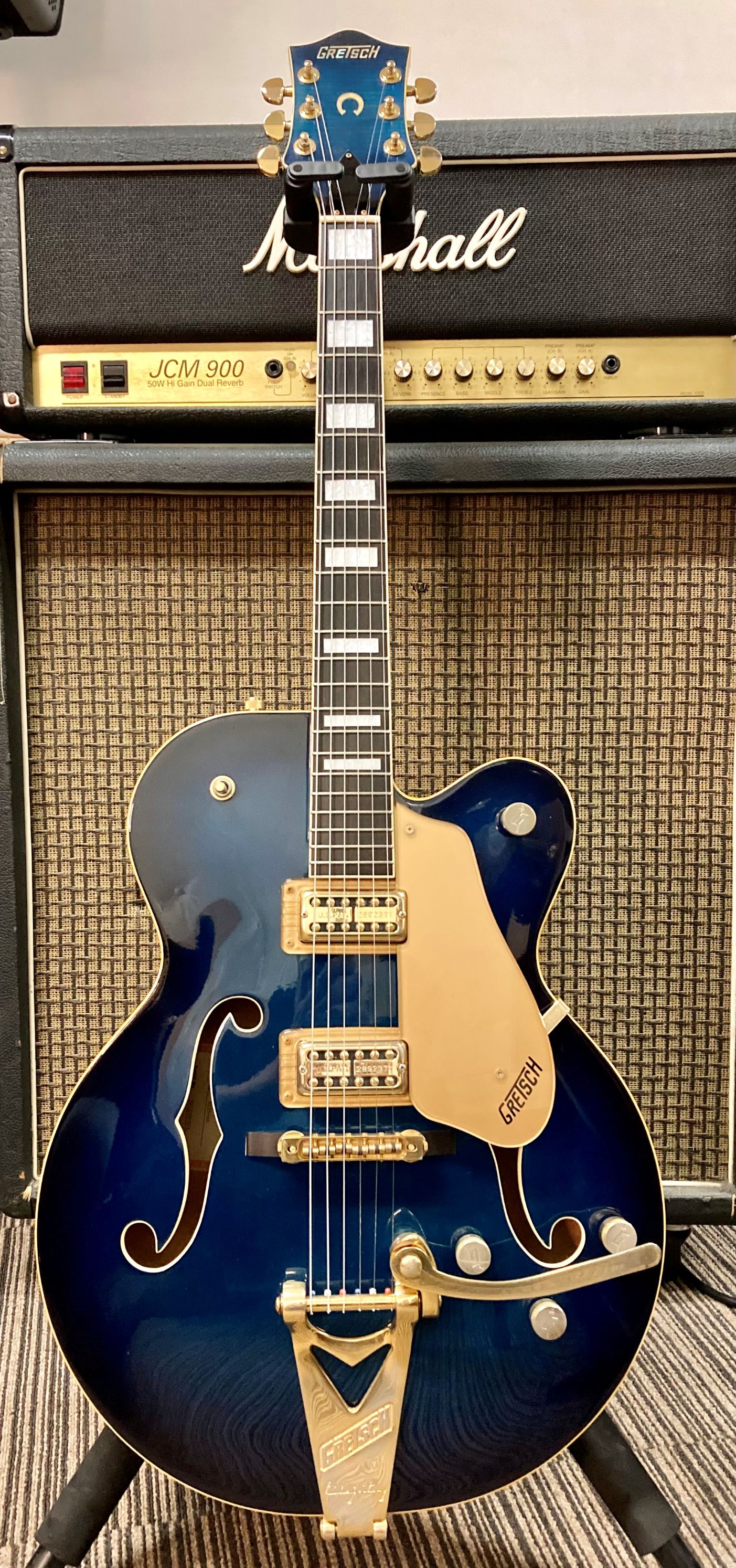 BRIDGE:Traditional boxed-steel bridge with individual brass saddles