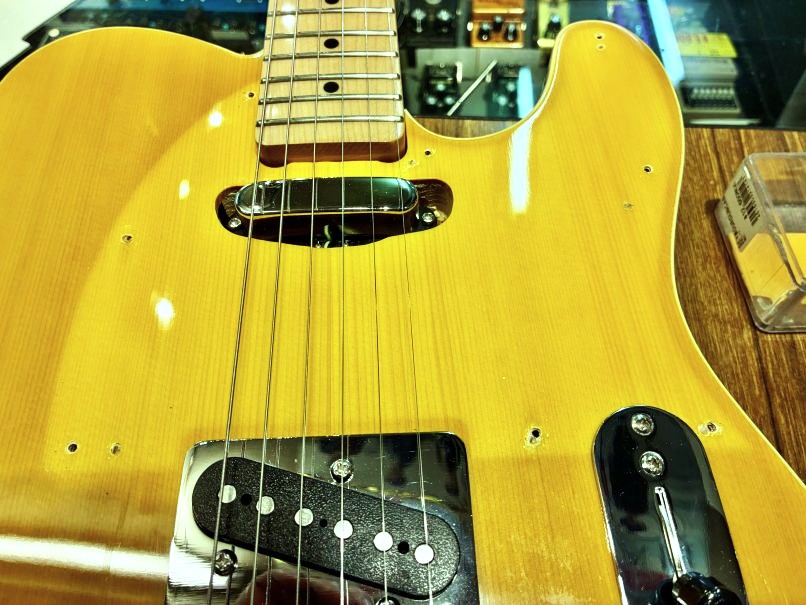 どこがと言えばピックガードが変更されておりボディには前のピックガードの取付穴の跡があります。写真はピックガードを外したもの。もちろん穴はピックガードの下なので見えておりません。
